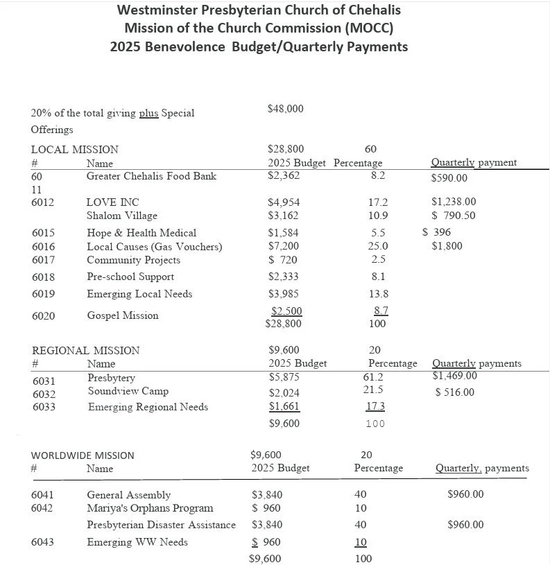 A review of the Westminster Presbyterian Church of Chehalis (WPC) – Pastor Nominating Committee (PNC) Process: The PNC worked diligently over 4 years to identify a candidate for referral to the Westminster congregation. Our first transition pastor, Debbie Garber began her service and concluded it in June of 2022. During her time of service, she assisted in the development of the Mission Study. The Mission Study as well as WPC’s Ministry Information form required for posting the position on the PCUSA’s Church Leadership Connection were completed by the PNC between June 2022 and August 2022 and approved by Session and the Olympia Presbytery’s Commission On Ministry (COM) in August 2022. The PNC began its search process in September of 2022. From September 2022 to January 2025 the PNC reviewed approximately 143 candidates, interviewed 11 candidates, and offered interviews to an additional 13 candidates who either declined or did not respond to the invitation. We are excited to present Thomas Walters as a candidate for the position of solo pastor of Westminster Presbyterian. Early in this process, it was stated that the candidate God is preparing to serve us may not yet have completed training. Indeed, that is the case as during that time God, with direction from the Spirit was leading Thomas in seminary. At the same time the Spirit was also preparing WPC for the future. We are excited to be on a Spirit led journey with Thomas serving our congregation as God continues His Story in 6 and through our congregation. Pastor Thomas was Ordained and Installed on June 22nd, 2025. PNC members have continued to be available to Thomas.